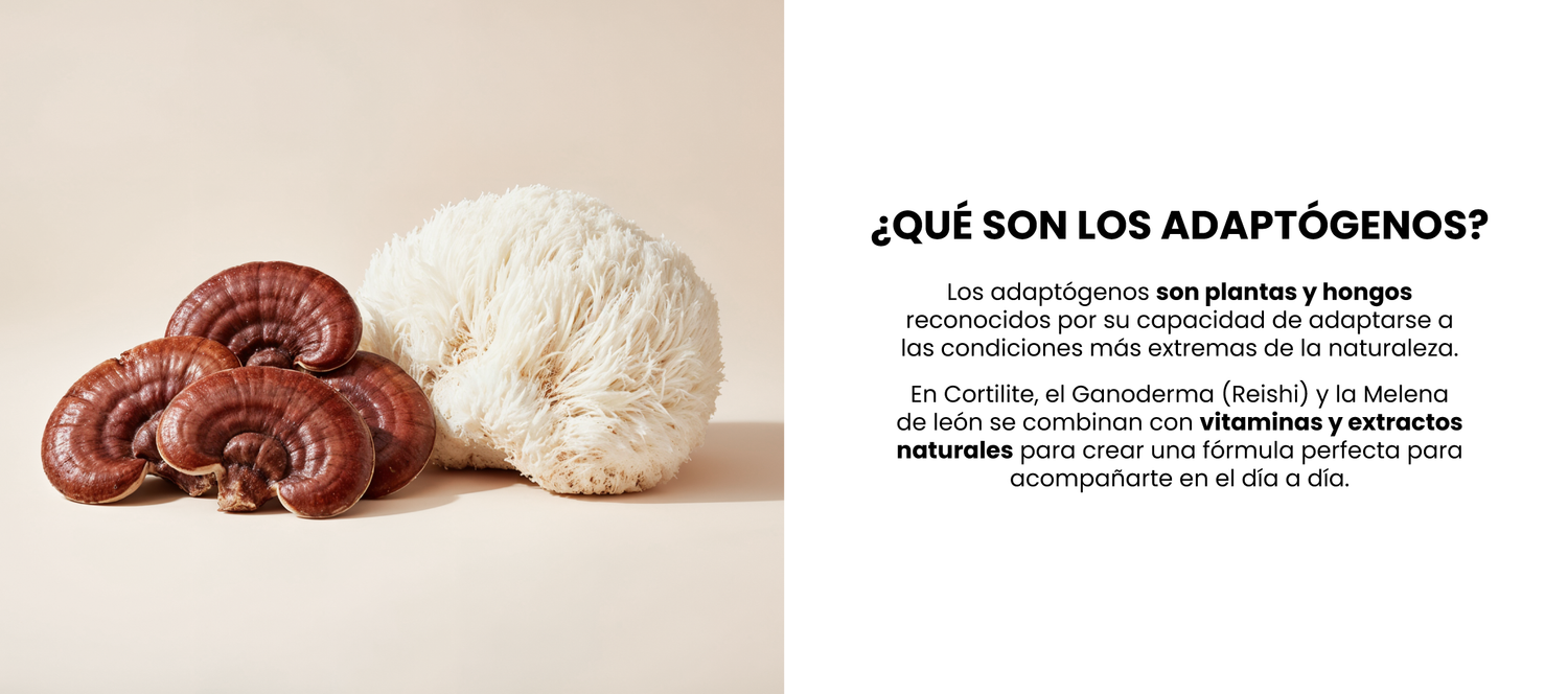 Son plantas y hongos que se adaptan naturalmente a los entornos más exigentes. En Cortilite usamos Ganoderma (Reishi) y Melena de león, ingredientes tradicionales reconocidos por su origen natural y su uso ancestral en diferentes culturas.