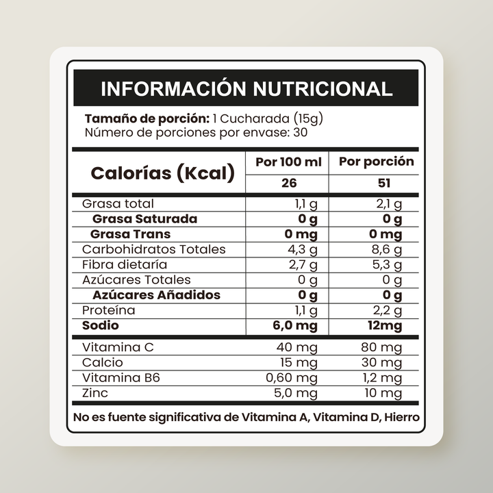 - Sin azúcar añadida • Sin gluten • Apta para personas veganas.