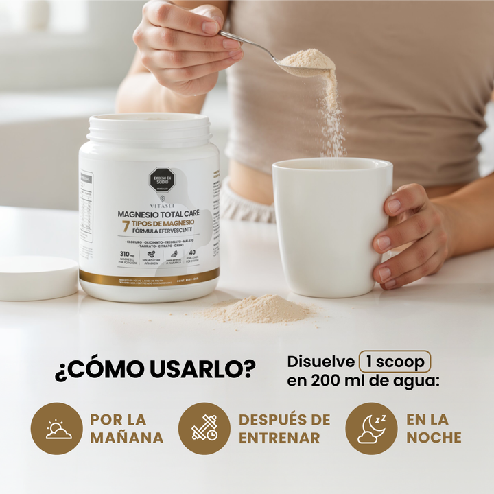 Magnesium Total Care está hecho para adultos y puede hacer parte de tu rutina diaria como complemento nutricional. Si estás embarazada, en periodo de lactancia o tienes alguna condición de salud especial, lo más seguro es conversar antes con tu médico de confianza para estar tranquila(o).