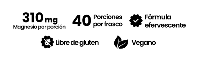 Es un alimento en polvo a base de magnesio que combina 7 formas diferentes de magnesio (Cloruro, Citrato, Taurato, Treonato, Aspartato, Bisglicinato, Malato) en una fórmula efervescente y de agradable sabor cítrico.