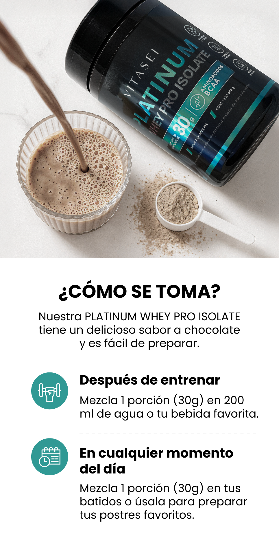- Delicioso sabor a chocolate ideal para preparar tus smoothies y recetas saludables.