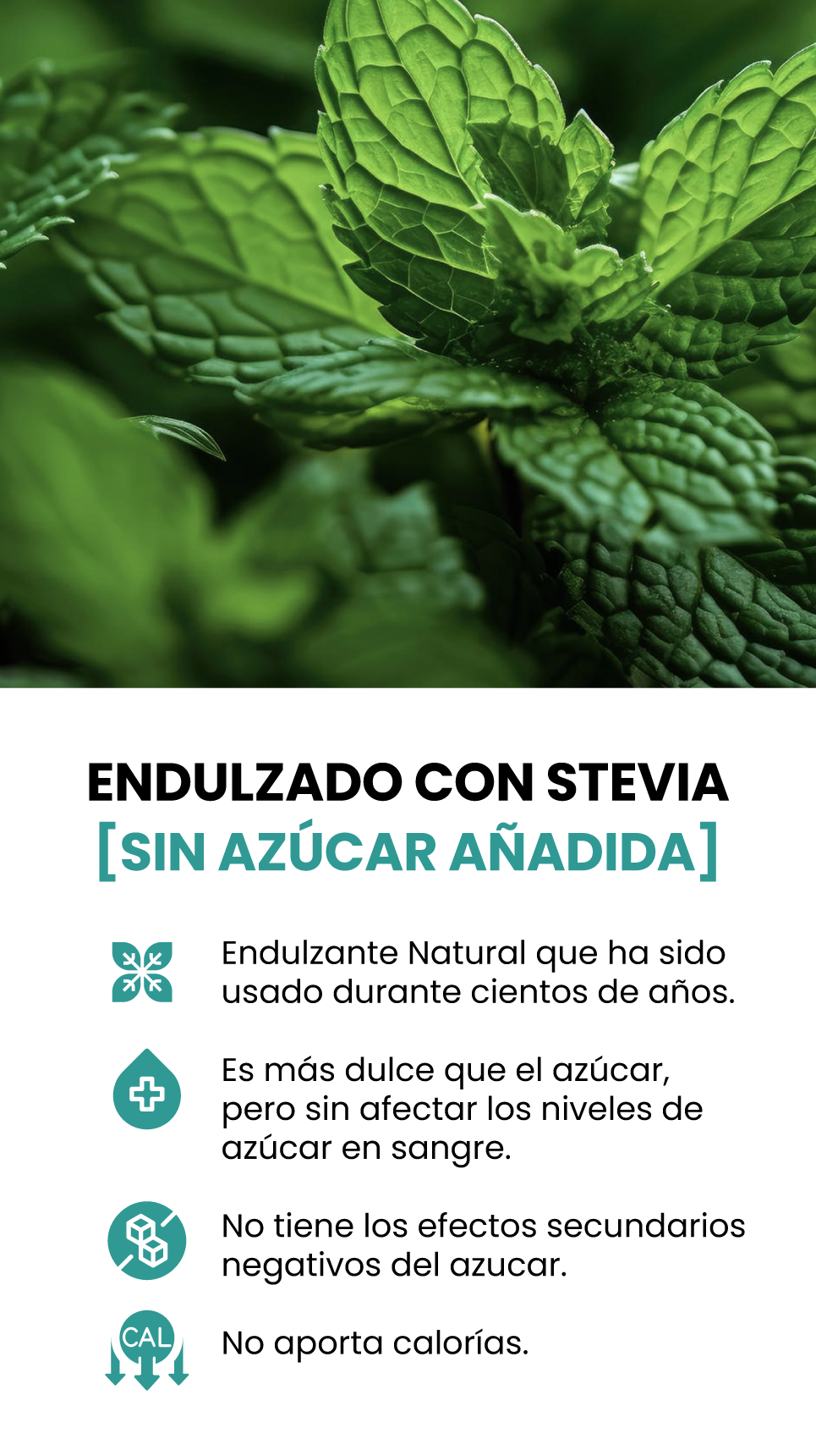 - Sin azúcar añadida, sin soya, sin harinas
